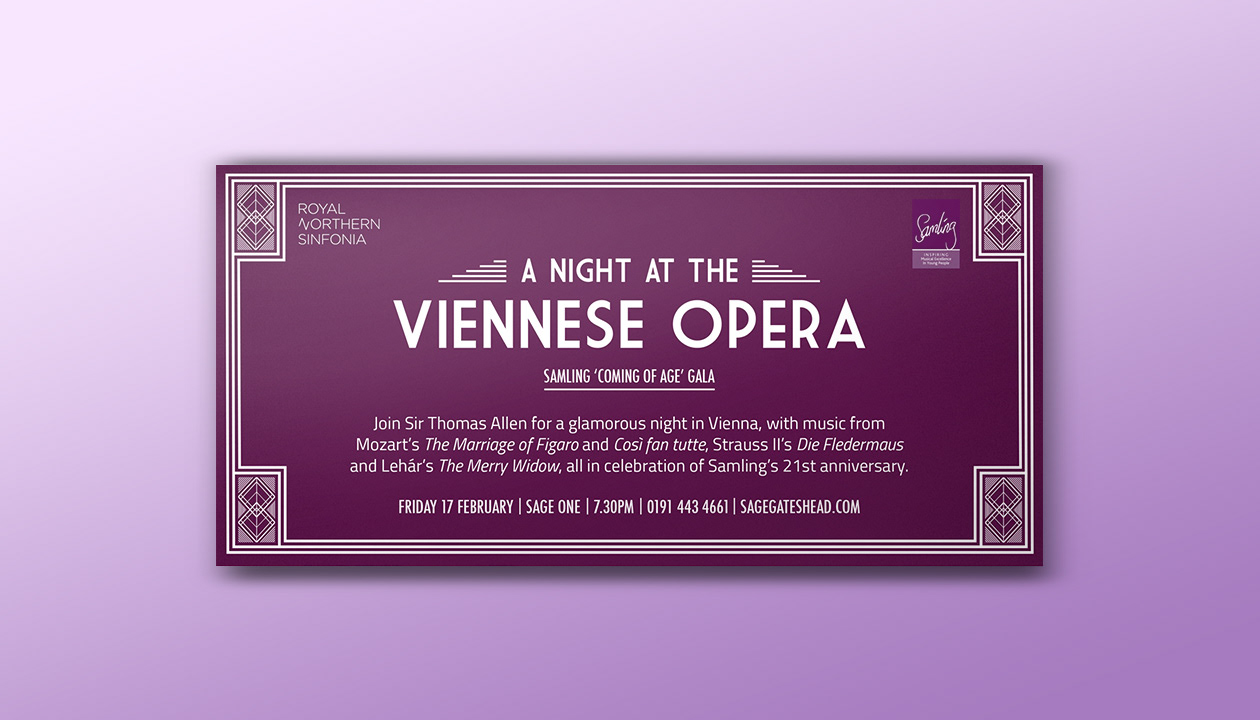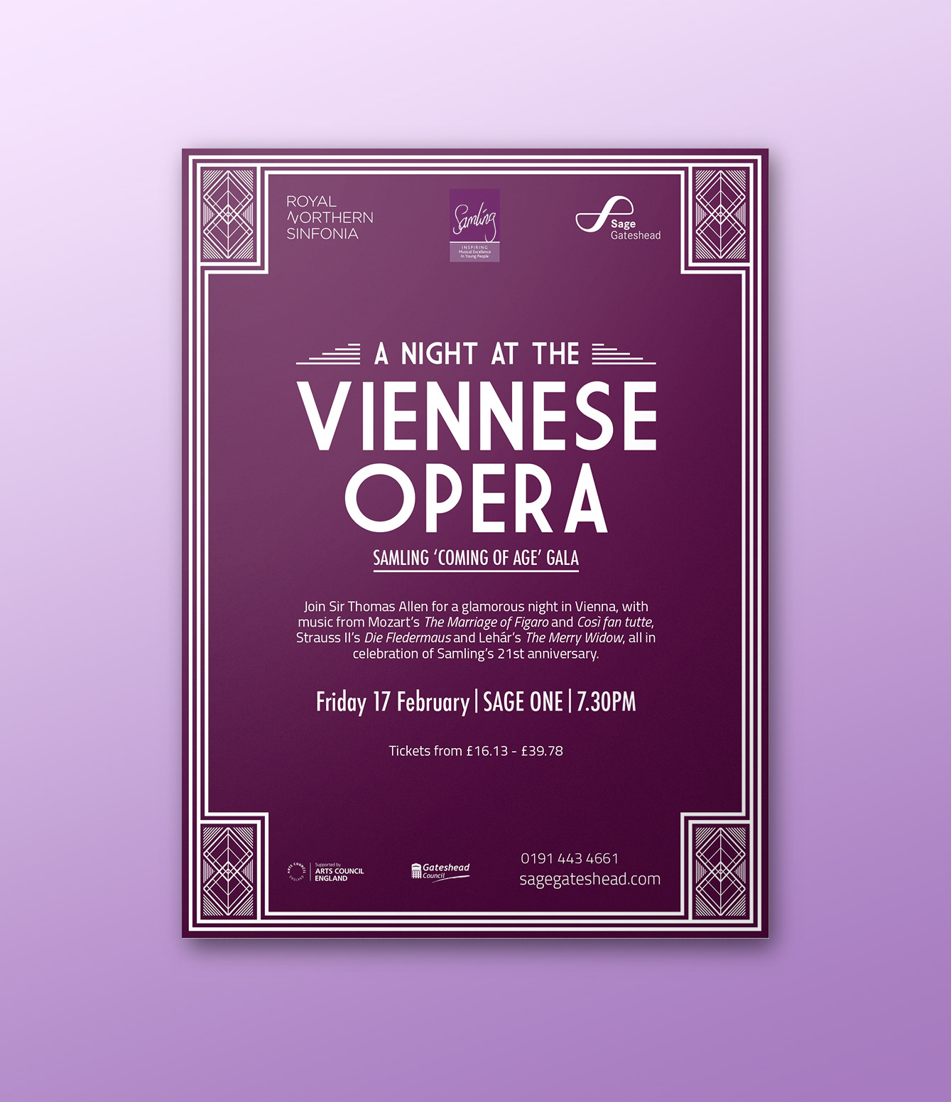 I designed promotional material for a show called A Night At The Viennese Opera. The final outcome was printed portrait in A0/A1/A5 and a bespoke landscape.