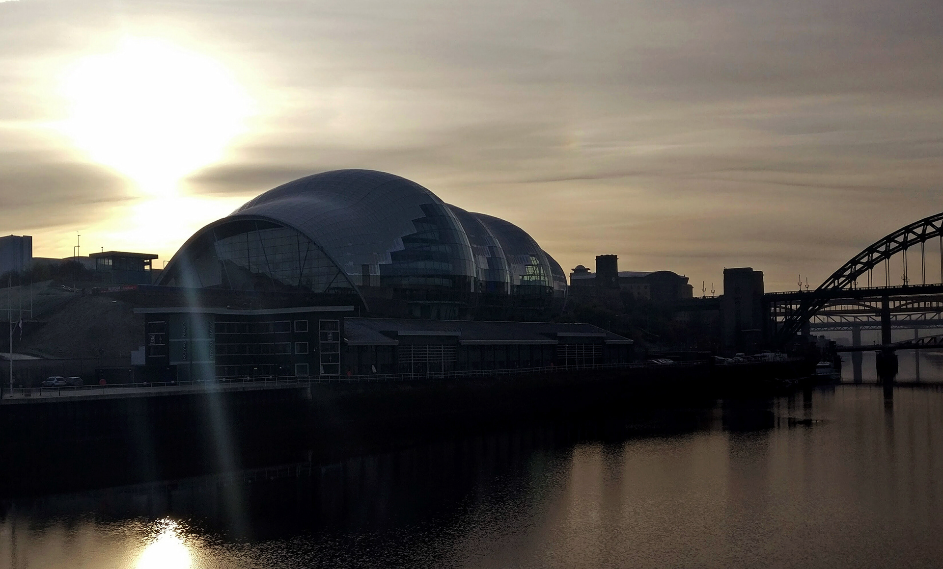 Photograph of Sage Gateshead taken from Gateshead Millennium Bridge.